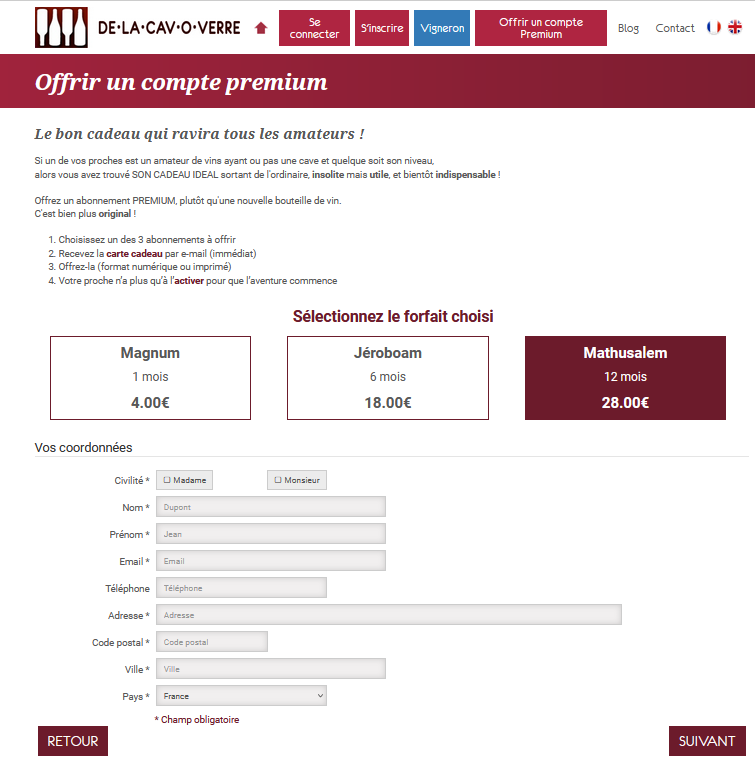 Différents abonnements proposés, 1 ou 6 mois pour découvrir les avantages d'un compte Premium et 12 mois pour profiter pleinement de tous les services proposés.