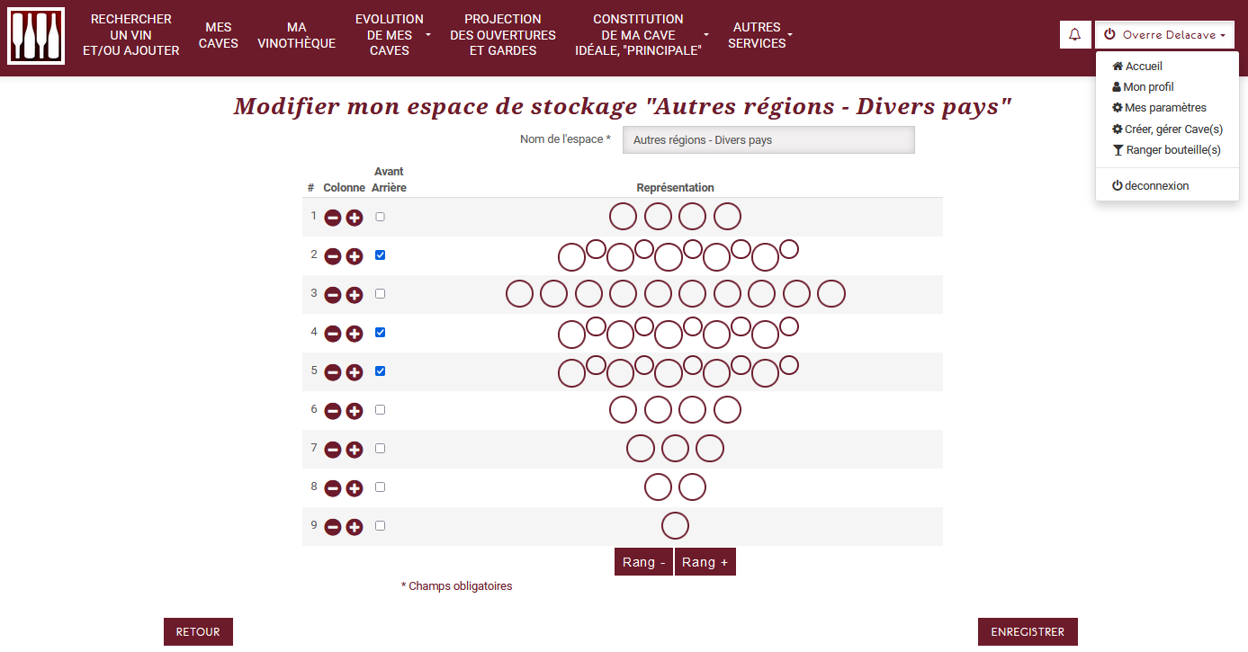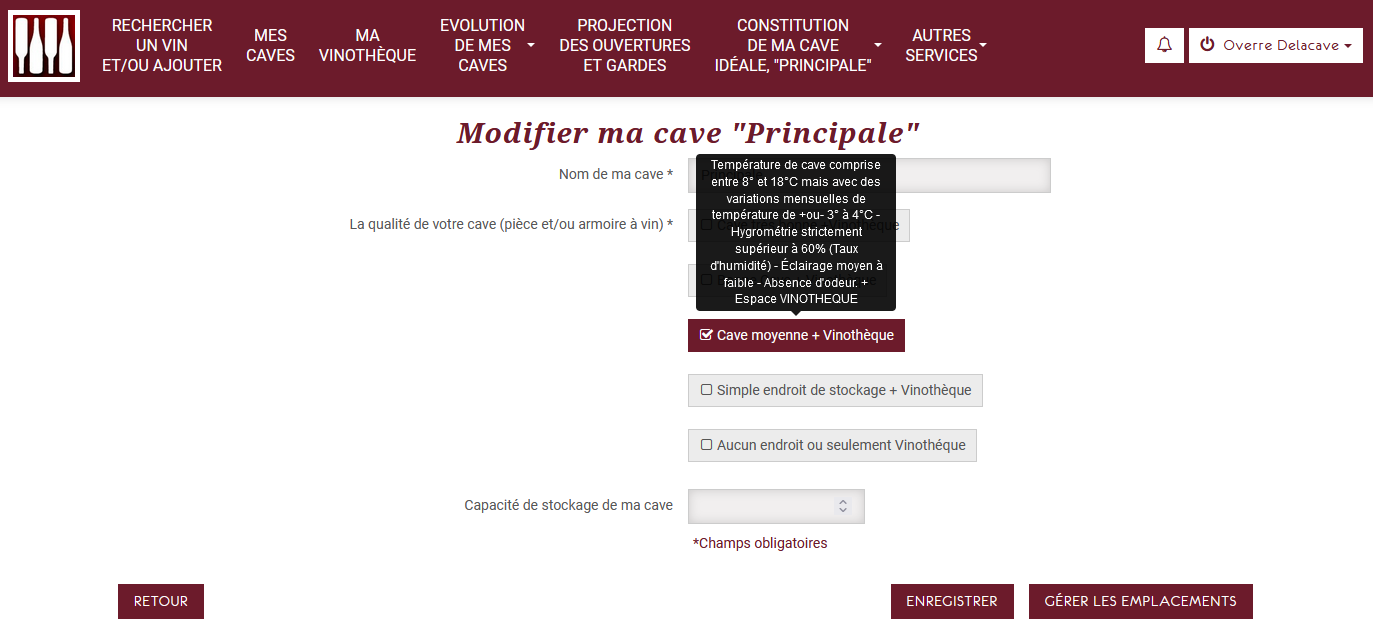 Avant de rentrer vos vins, créez facilement les emplacements de votre cave (Armoire de conservation et/ou de service, cave), il sera plus facile de les ranger au fur et à mesure que vous les entrerez.