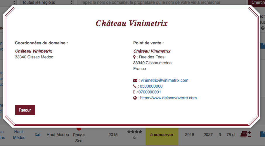 Enfin, nous avons lancé début 2020, l’application delacavoverre, qui permet de trouver rapidement les informations d’un vin. L’application utilise la même base de données que le site internet et est également ouverte à tous les amateurs de vins.