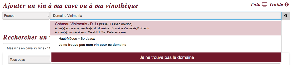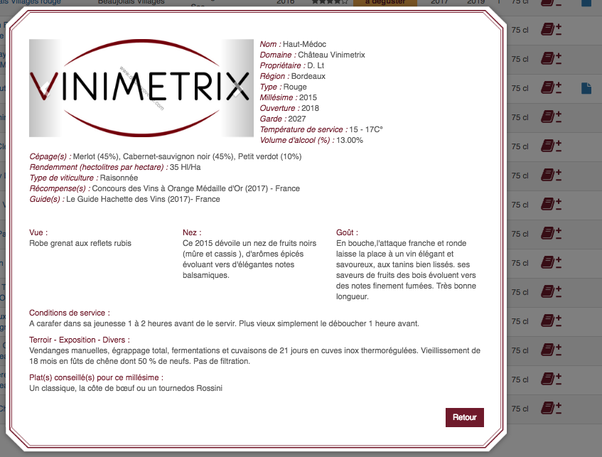 Nous avons développé un accès pour tous les amateurs de vins, qui gèrent leur cave ou non, à partir du module de la Vinothèque, pour leur permettre de construire et suivre l'historique de toutes leurs dégustations.